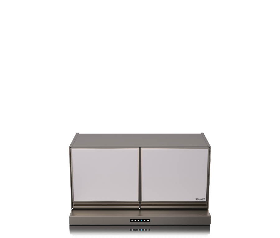 Závěsná skříňka se zabudovaným odsavačem a dvěma křídly dveří, vychází ze standardních rozměrů navržených firmou Rizzoli, které lze všestranně přizpůsobit jak co do velikosti, tak tvaru. Díky modularitě systému si zákazník může libovolně sestavit kuchyňský nábytek výběrem jednotlivých dostupných prvků. Z estetického hlediska je výběr neomezený a lze si vybírat z různých povrchových úprav a velkého počtu barev k dispozici.