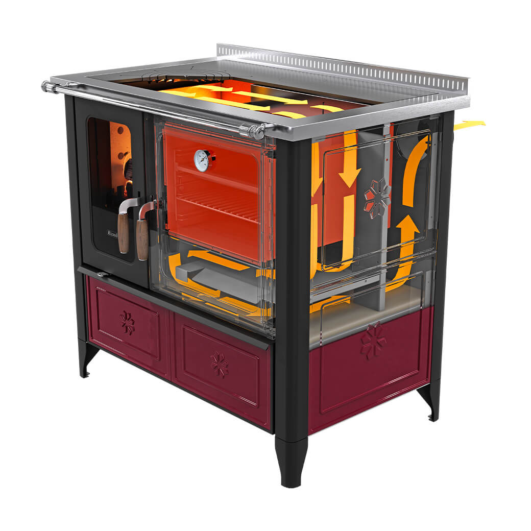 In the new N Series the best construction techniques have been adopted and have been carefully select the best raw materials. The superior quality steel, the combustion chamber in certified refractory material and the plate in special steel, elements that have always distinguished the Rizzoli production, are perfectly integrated with the majolicas handcrafted by Bassanese masters, with the Natural Stone and with the precious handles in walnut wood.