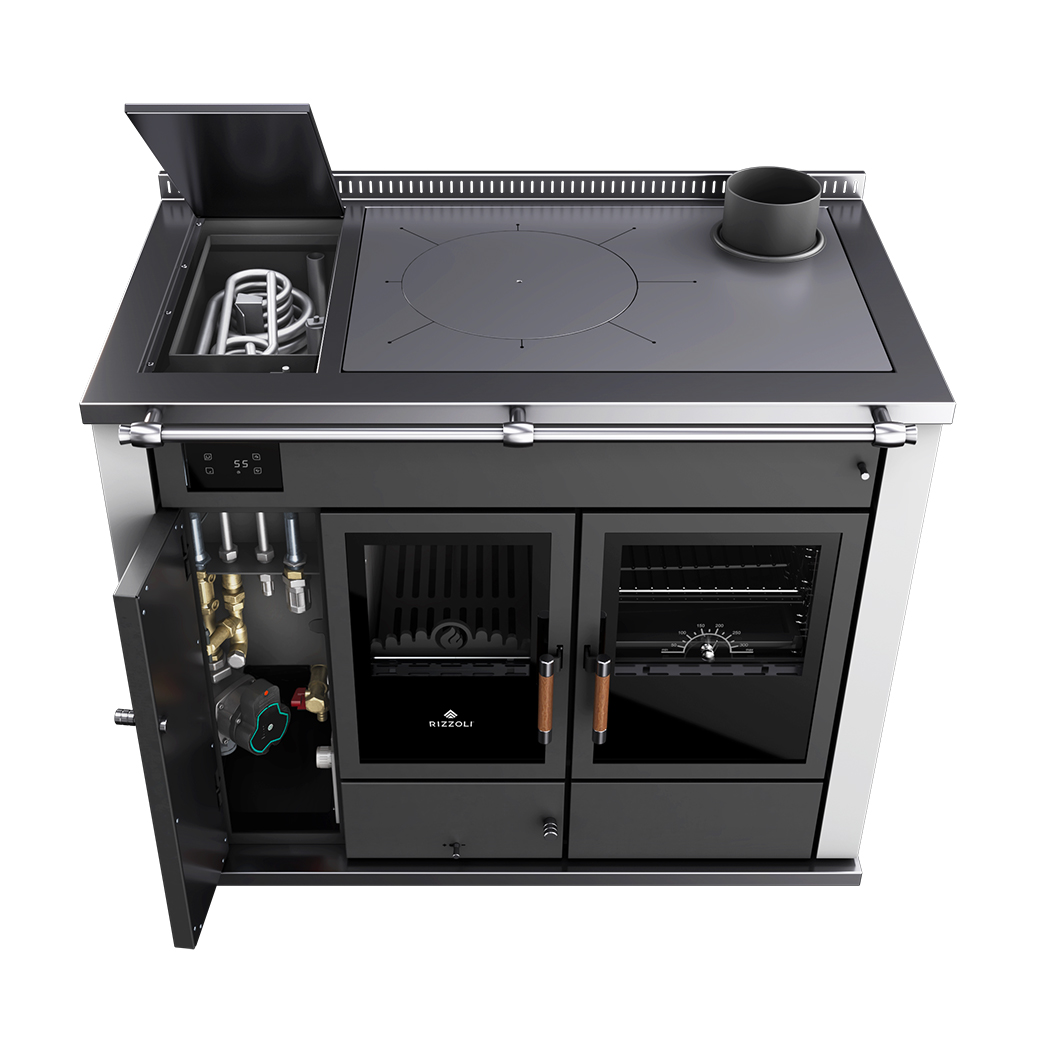 The STP range includes wood-burning thermo-cookers that are at the top of the market for technical and functional characteristics: 30.7 KW power, wide combustion chamber, they are extremely easy to install and use. These thermo-cookers stand out because they allow to have both water for the heating system and the domestic circuit separately. The STP range has undergone a great restyling, both in design and coatings. Now you can choose from hand-made majolica and serpentine stone fishing.