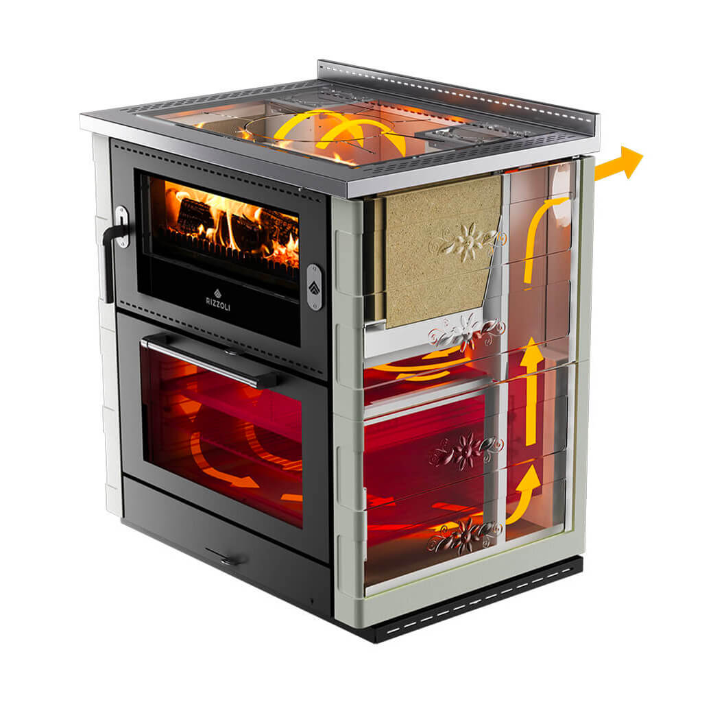 Las cocinas de leña con sistema certificado Surround Heat® pueden instalarse empotradas entre muebles a tan sólo 2 mm de distancia y garantizan una seguridad óptima en todas las situaciones y condiciones de montaje.