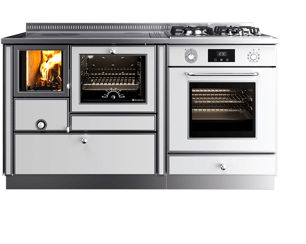 Immaginatevi nella vostra cucina un unico piano di lavoro, che comprenda piano cottura di qualsiasi tipo (induzione, gas, vetroceramica), forno elettrico multifunzione e naturalmente una cucina a legna Rizzoli. Avete appena pensato ai monoblocchi della Serie RE, prodotti che danno la possibilità di cucinare in svariati modi con un unico apparecchio. Ad impreziosire questi modelli c’è l’estetica coordinata di tutti i componenti. Gli elettrodomestici sono selezionati tra le migliori marche sul mercato, oppure scelti dal cliente.