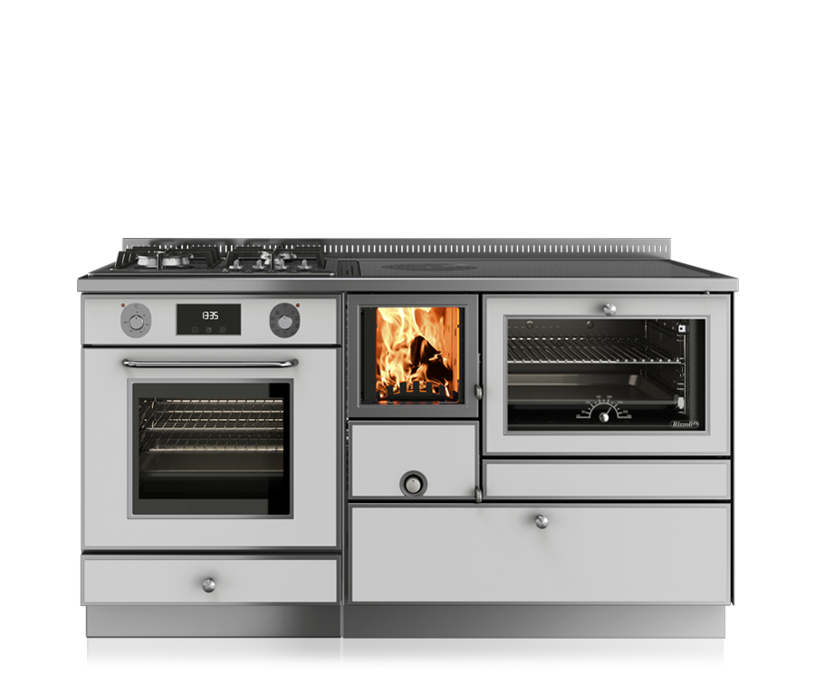 Sono prodotti completi di cucina a legna ed elettrodomestico con forno e piano cottura abbinato. La coerenza estetica è garantita dalla sapiente maestria artigianale degli esperti Rizzoli.