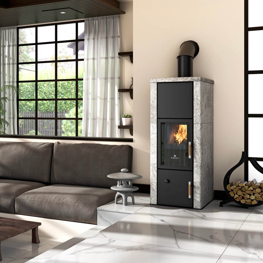 Termokachle na drevo značky Rizzoli sú vyvinuté a naprojektované, aby po zapojení k zariadeniu na produkciu teplej úžitkovej vody, a k vykurovaciemu systému s radiátormi, nezávisle vykurovali dom. Tieto výrobky využívajú certifikovaný inovačný systém spaľovania H2O System®, charakterizovaný oceľovými chráničmi, ktorými je úplne obložená spaľovacia komora a, ktoré chránia telo kotla. Okrem toho, drevo horí účinnejšie, čím sa dosahuje vyššia účinnosť celého procesu, menšia spotreba a nižšie emisie.